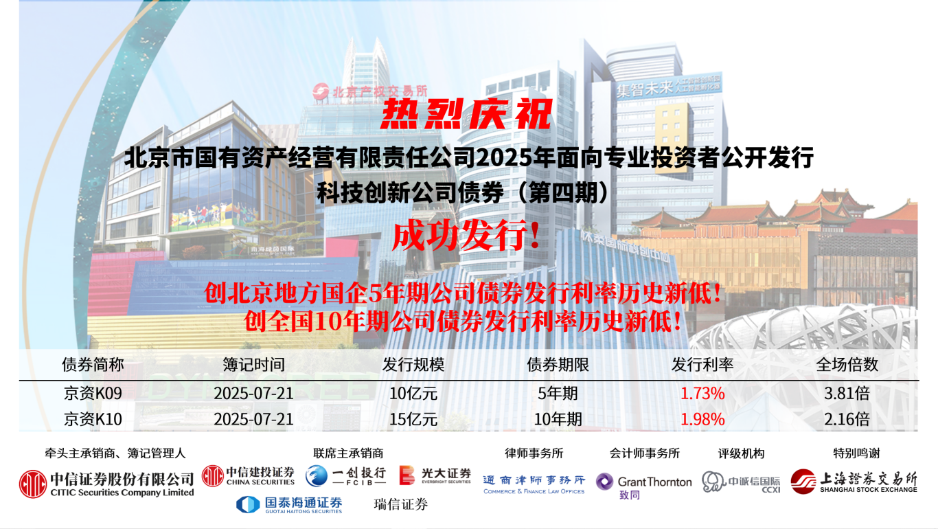 7月21日,北京市國(guó)有資產(chǎn)經(jīng)營(yíng)有限責(zé)任公司(以下簡(jiǎn)稱北京國(guó)資公司)在上交所成功發(fā)行2025年第四期科...