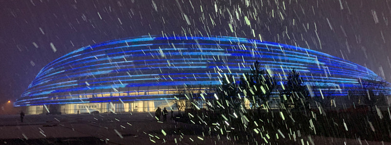 近日,國(guó)家速滑館場(chǎng)館啟動(dòng)了外立面泛光照明和場(chǎng)地照明調(diào)試,夜色中的“冰絲帶”晶瑩剔透、美輪美奐。