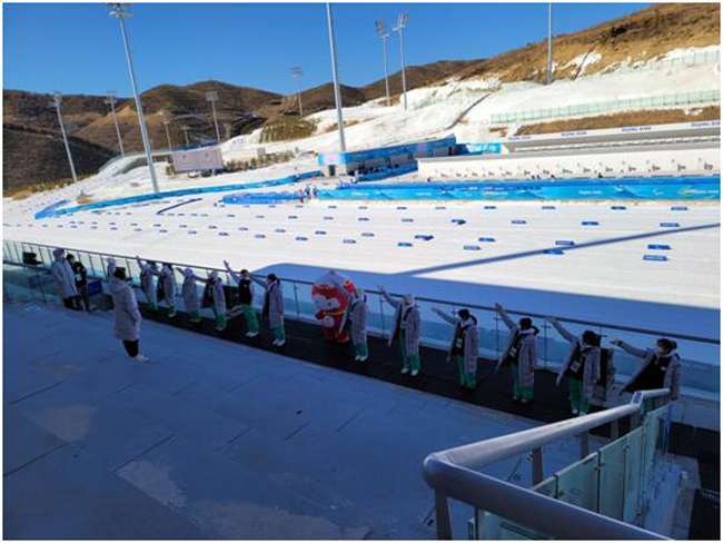 經(jīng)過(guò)1個(gè)多月的艱苦訓(xùn)練,這些孩子成功完成了既定的表演節(jié)目,有力保障了冬殘奧會(huì)體育展示工作順利進(jìn)行。賽時(shí),這些聽(tīng)障孩子每天提前30分鐘備場(chǎng),每天要完成兩場(chǎng)演出。他們的精彩演出不僅營(yíng)造了熱烈的現(xiàn)場(chǎng)氛圍,也傳遞著殘健融合、守望相助、一起向未來(lái)的美好愿望。