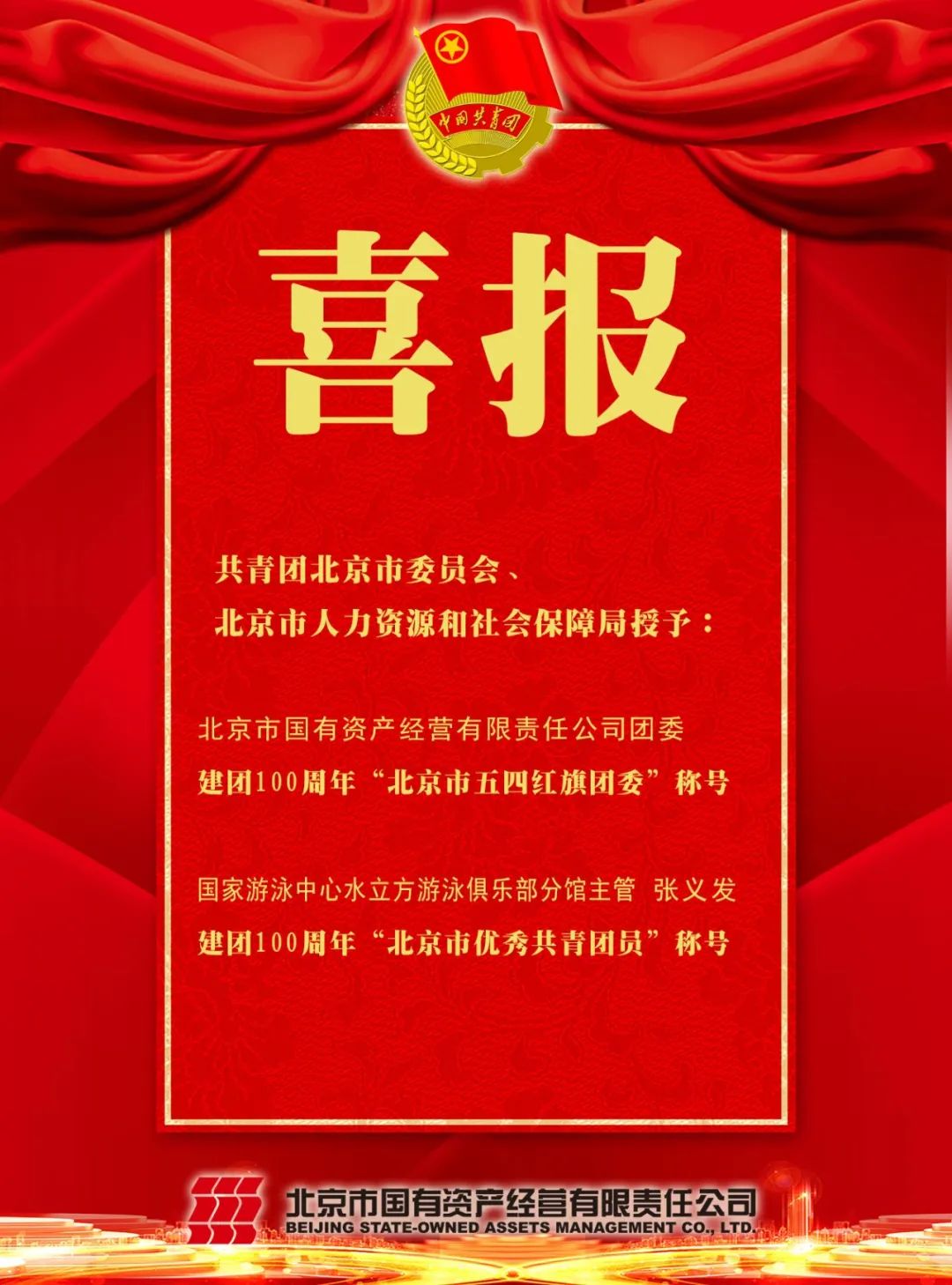 日前,建團100周年北京市先進組織和先進個人評選結果揭曉。共青團北京市委員會、北京市人力資源和社會保障局授予國資公司團委建團100周年“北京市五四紅旗團委”稱號,授予國家游泳中心水立方游泳俱樂部分館主管張義發(fā)建團100周年“北京市優(yōu)秀共青團員”稱號。