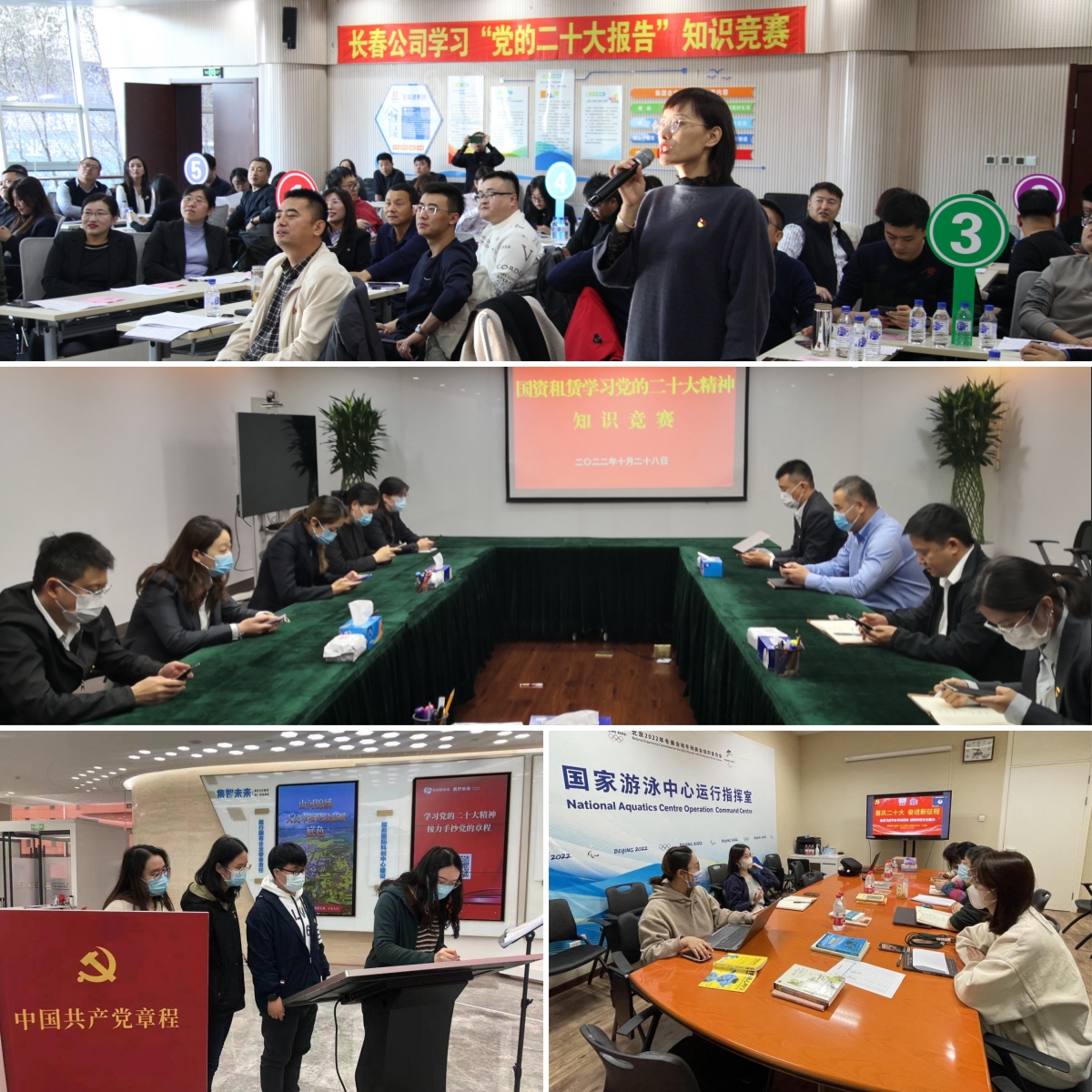 四是聚焦形式創(chuàng)新廣泛學(xué)。各基層黨組織充分發(fā)揮企業(yè)職工的主體作用和主觀能動(dòng)性,創(chuàng)新形式載體,豐富方法手段,不斷增強(qiáng)學(xué)習(xí)宣傳貫徹黨的二十大精神的吸引力感染力和針對(duì)性實(shí)效性。國(guó)資租賃黨支部、國(guó)苑公司黨支部、北科建集團(tuán)長(zhǎng)春公司聯(lián)合黨支部等舉辦學(xué)習(xí)“黨的二十大報(bào)告”知識(shí)競(jìng)賽,營(yíng)造“以賽促學(xué)、以學(xué)促干、以做踐學(xué)”的濃厚學(xué)習(xí)氛圍。集智未來(lái)公司黨支部與屬地街道聯(lián)合開(kāi)展“學(xué)習(xí)黨的二十大精神,接力手抄黨的章程”主題黨日,園區(qū)及企業(yè)在職黨員、街道黨員干部百余人參加活動(dòng)。國(guó)家游泳中心黨總支組織開(kāi)展“喜慶二十大 奮進(jìn)新征程”主題職工閱讀分享活動(dòng),結(jié)合自身業(yè)務(wù)工作實(shí)際分享學(xué)習(xí)黨的二十大報(bào)告心得體會(huì)。首都信息公司首信科技黨總支將學(xué)習(xí)黨的創(chuàng)新理論與業(yè)務(wù)工作有機(jī)結(jié)合,與首經(jīng)貿(mào)管理工程學(xué)院黨委等黨組織開(kāi)展“共學(xué)新思想、共探新思路、共謀新發(fā)展”學(xué)習(xí)貫徹黨的二十大精神共建活動(dòng),以高質(zhì)量黨建引領(lǐng)企業(yè)高質(zhì)量發(fā)展。