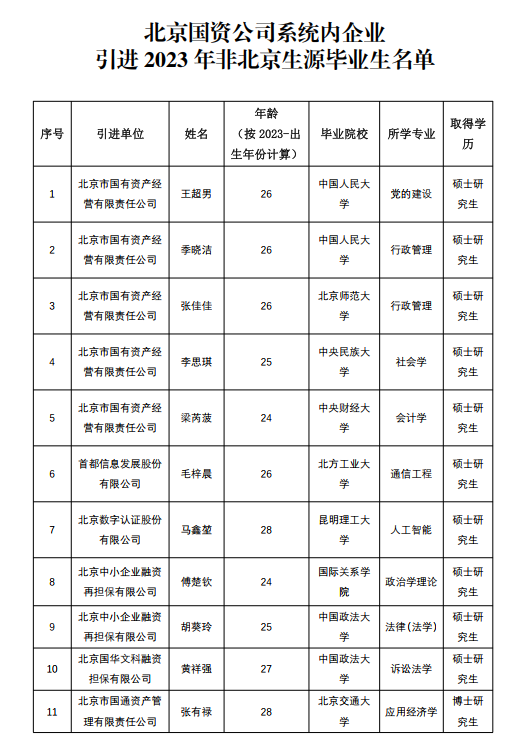 北京國資公司系統(tǒng)內(nèi)企業(yè)引進2023年非北京生源畢業(yè)生的公示