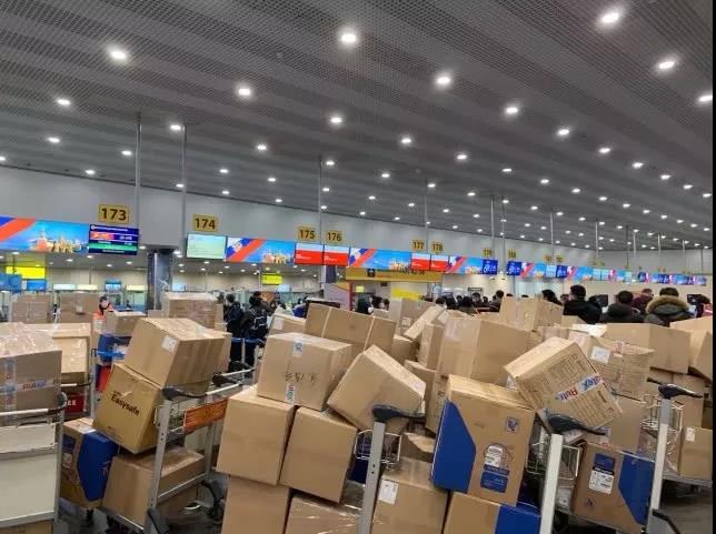 首都航空開(kāi)通綠色通道,首批俄羅斯華商捐贈(zèng)的244箱醫(yī)用口罩、防護(hù)服、護(hù)目鏡等物資運(yùn)抵杭州。