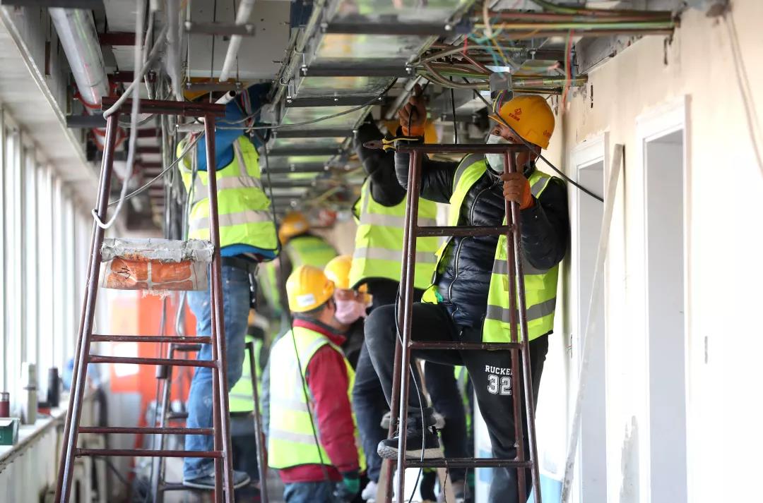 小湯山醫(yī)院修繕工程現(xiàn)場(chǎng)。