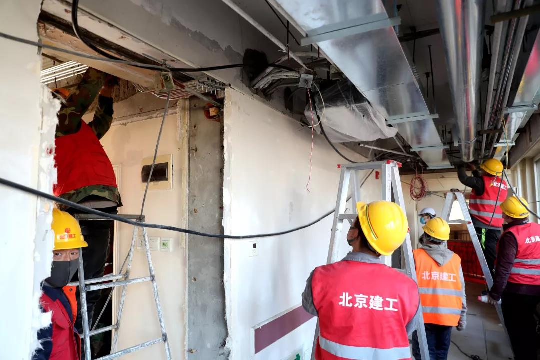 大年三十和正月初一,建工集團(tuán)京內(nèi)各留守項(xiàng)目部調(diào)集人員全力開(kāi)始工程建設(shè)。城建集團(tuán)停下正在進(jìn)行裝修改造的城建科技大廈工程,將所有工人全部派往小湯山醫(yī)院。