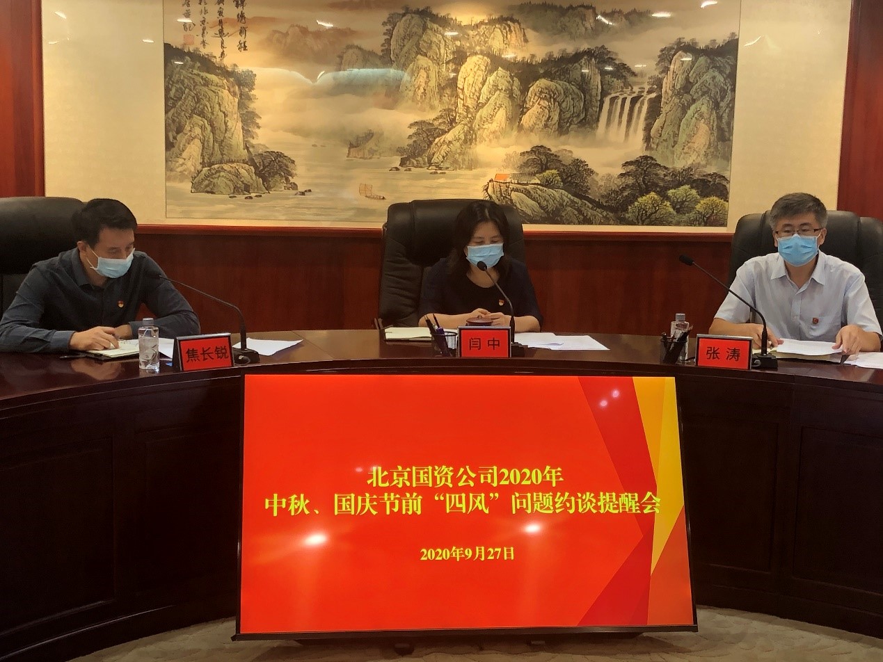 中秋、國慶雙節(jié)將至,為深入貫徹落實習近平總書記關于制止餐飲浪費行為的重要指示精神,鞏固和拓展落實中央八項規(guī)定精神成果,按照上級工作部署,9月27日下午,北京國資公司紀委組織召開全系統(tǒng)“中秋”“國慶”節(jié)前約談提醒會。會議以視頻形式召開,公司紀委、機關黨總支及公司總部相關部門負責人、各二級企業(yè)紀檢工作負責人及分管財務、公務接待、后勤管理及車輛管理工作的分管領導等共93人參加會議。