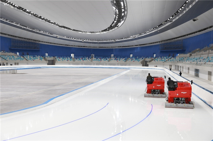 作為冬奧會(huì)唯一新建冰上競(jìng)賽場(chǎng)館,“冰絲帶”已于2020年12月完工,并于今年1月成功完成首次制冰,1.2萬(wàn)平方米的世界最大冰面采用二氧化碳制冰,在綠色、環(huán)保、可持續(xù)上為奧運(yùn)會(huì)樹立了新的標(biāo)桿,為世界貢獻(xiàn)了由中國(guó)設(shè)計(jì)、中國(guó)技術(shù)、中國(guó)制造組成的奧運(yùn)場(chǎng)館建設(shè)“中國(guó)方案”。國(guó)家游泳中心創(chuàng)造性地提出“水冰轉(zhuǎn)換”的雙奧場(chǎng)館改造方案,并于2020年11月完成了場(chǎng)館改造工程,實(shí)現(xiàn)了“水立方”向“冰立方”的華麗轉(zhuǎn)身,成為北京2022年冬奧會(huì)第一個(gè)實(shí)現(xiàn)完工驗(yàn)收的改造場(chǎng)館。