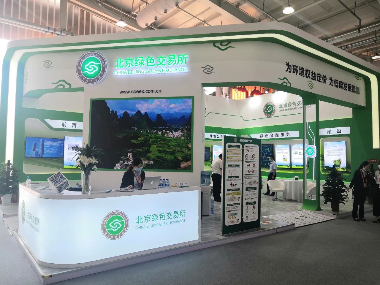 北京綠色交易所以“為環(huán)境權(quán)益定價 為低碳發(fā)展賦能”為參展主題,在展區(qū)通過互動大屏、智能機器人等多重科技元素展現(xiàn)了北京綠色交易所在環(huán)境權(quán)益交易、綠色公共服務(wù)、低碳發(fā)展服務(wù)和綠色金融服務(wù)等方面開展的創(chuàng)新探索。