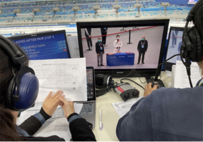 本次比賽為今年首場北京冬奧國際測試賽,為順利完成賽事體育展示服務(wù)保障工作,北奧集團(tuán)在冬奧組委文化活動(dòng)部的指導(dǎo)下,結(jié)合賽程賽制,積極研討競賽日工作重點(diǎn),在賽前制定完善詳盡的體育展示腳本和賽時(shí)保障工作方案,并攜手所屬企業(yè)水晶石公司以及來自加拿大的場館制作人艾米、音樂總監(jiān)丹尼爾組建了一支19人的體育展示工作團(tuán)隊(duì)。