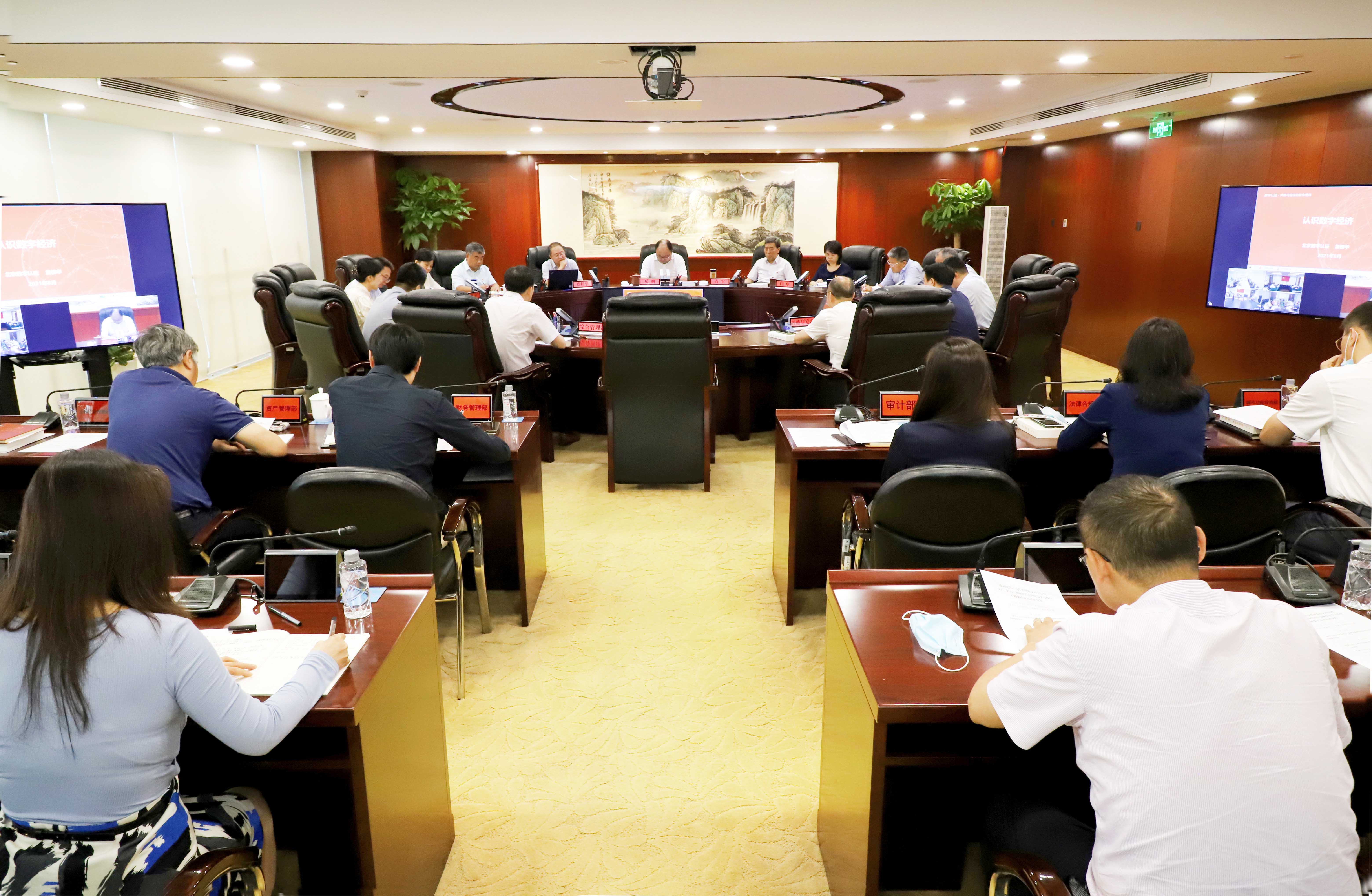 8月30日,北京國資公司黨委以理論學(xué)習(xí)中心組學(xué)習(xí)(擴(kuò)大)會的形式舉辦視頻報告會,黨委書記、董事長岳鵬主持學(xué)習(xí),旗下數(shù)字認(rèn)證公司黨委書記、董事長詹榜華作了題為《認(rèn)識數(shù)字經(jīng)濟(jì)》的輔導(dǎo)報告。公司領(lǐng)導(dǎo)班子成員、總部中層以及二級企業(yè)領(lǐng)導(dǎo)班子分別在總部及視頻分會場參加.