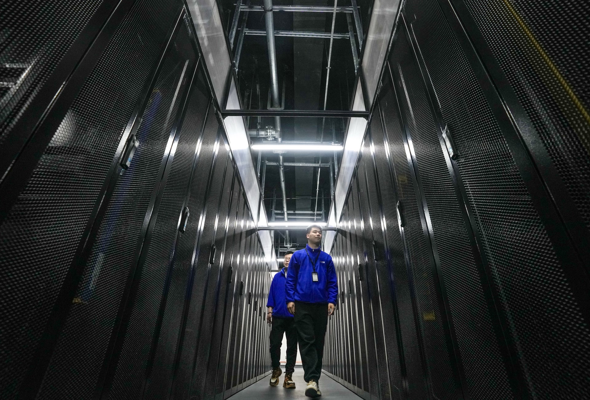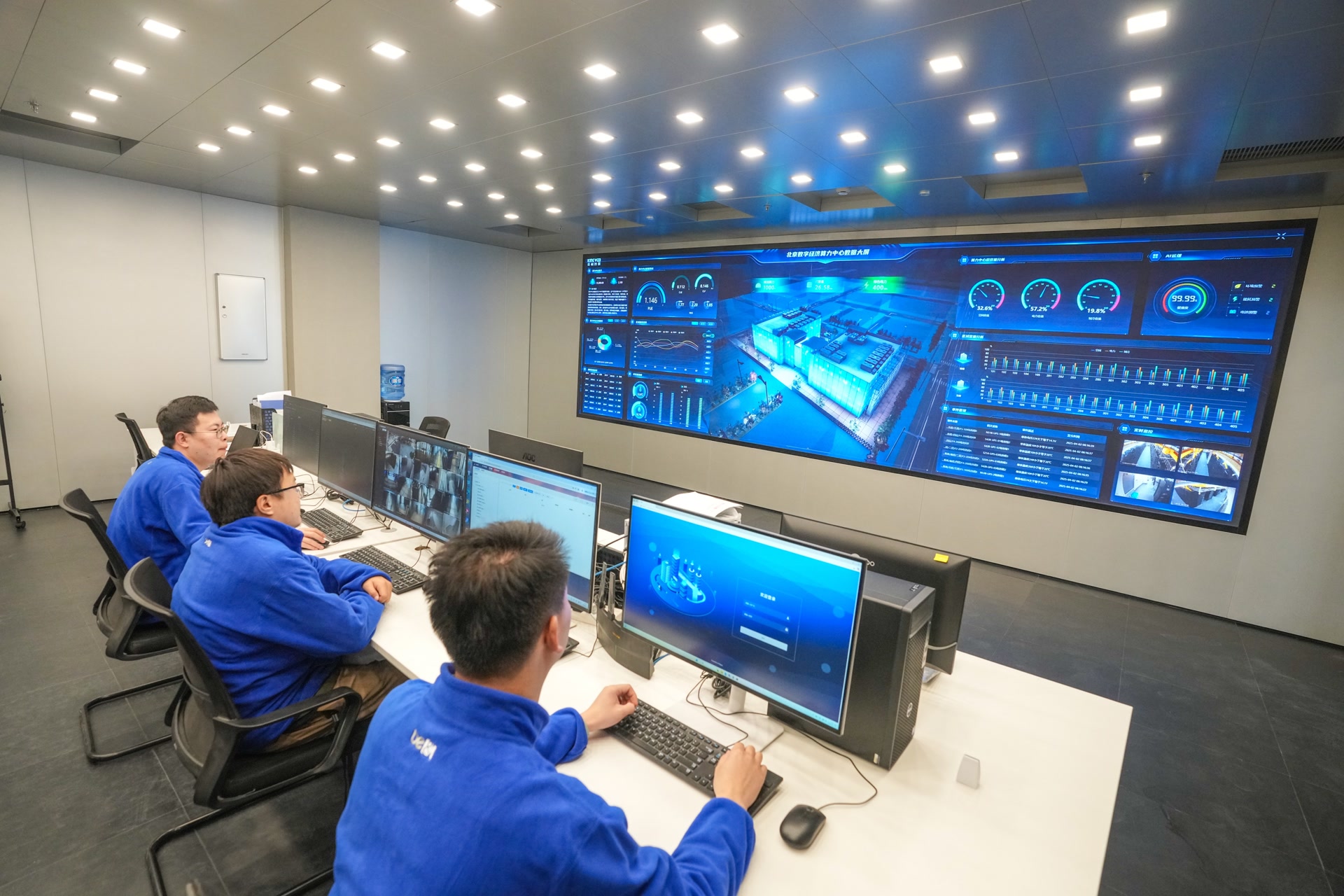 北京數字經濟算力中心內,工作人員在查看中心各項運轉數據。